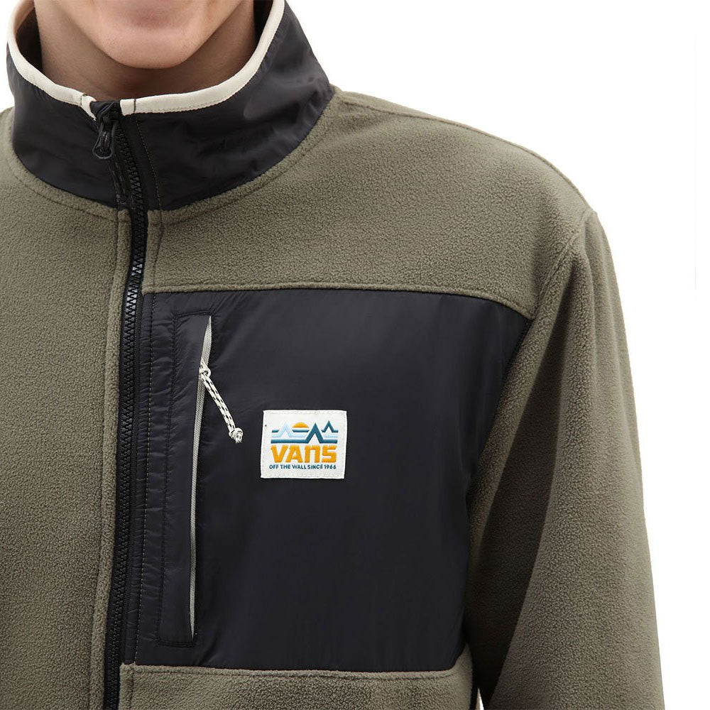 Made with 100% polyester polar fleece, this comfortable zip-up sweatshirt features contrasting pocket and neck details and a simple mountain range logo label at left chest.