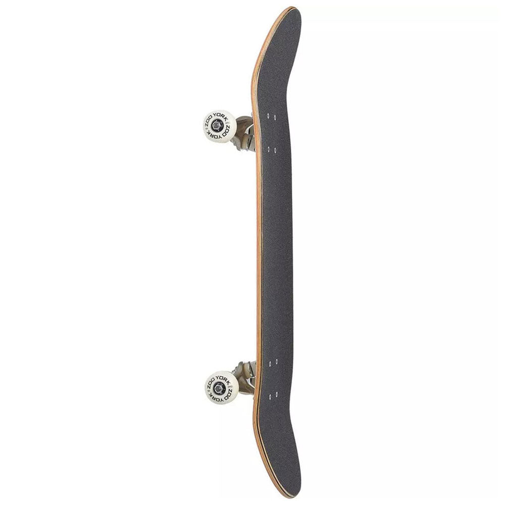 A complete skateboard made with traditional 7-ply maple construction in a medium concave for ultimate performance and pop. Fitted with raw Zoo York standard kingpin trucks complete with softer 88A bushings for manoeuvrability.